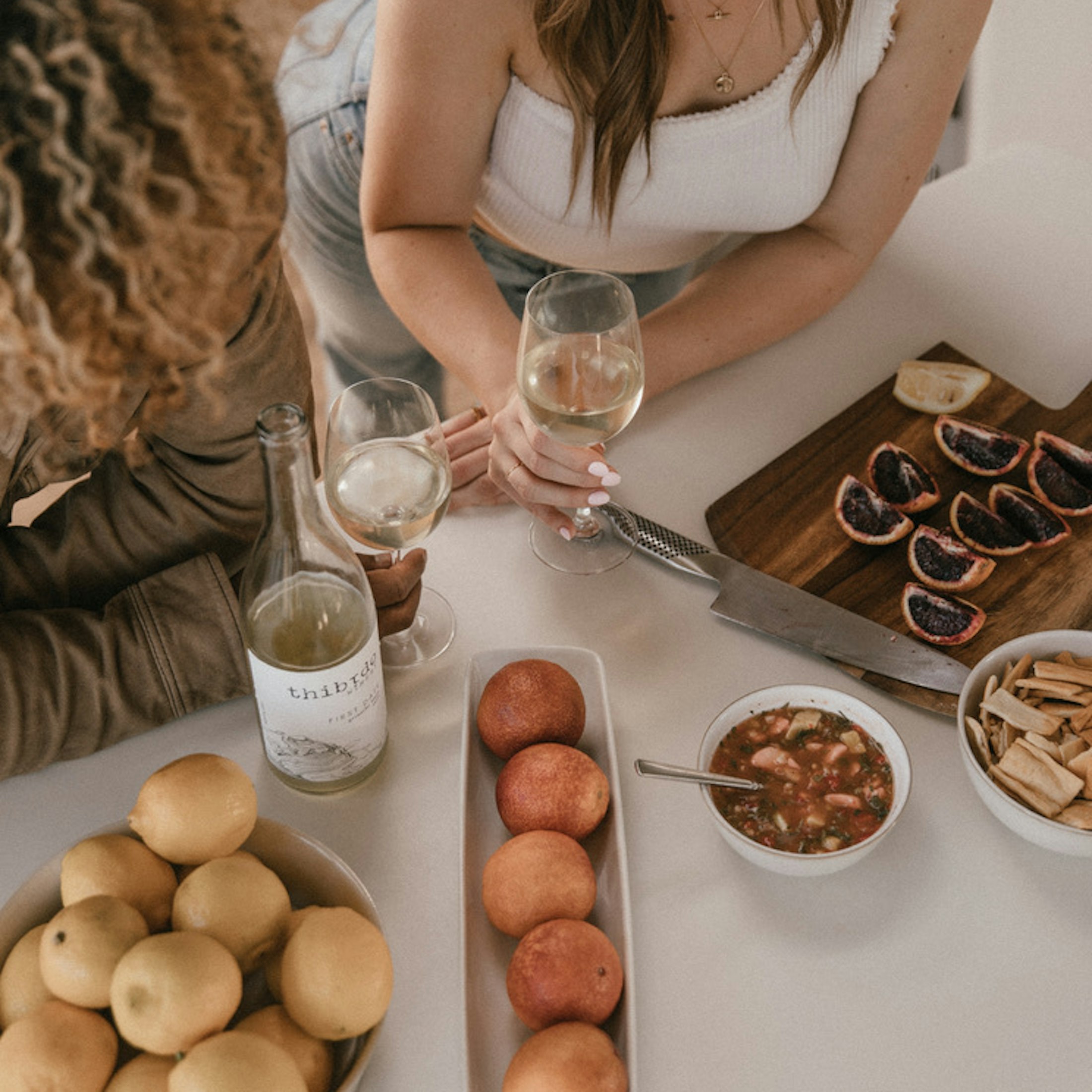 Have you tasted a spicy citrus popcorn?!? If you have a few minutes ahead of arriving guests, surprise them with this fun twist on an old favorite. I prefer to pop kernels in a heavy pot over the stove because the resulting popcorn is so light and crunchy. The seasoning is simple; zest a lemon into melted butter, add cayenne and sea salt, toss it all into a big paper bag with the popped corn to shake up and serve. This pairs beautifully with the ’21 First Date!